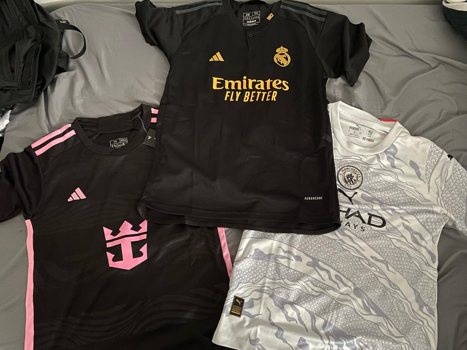 Bring home the win in the 23/24 Kids Miami CF Away Kit. Featuring the same style as worn by your favorite players like Messi at games. with high performance fabric for a cool fit. this jersey will have you playing your best while repping the best.