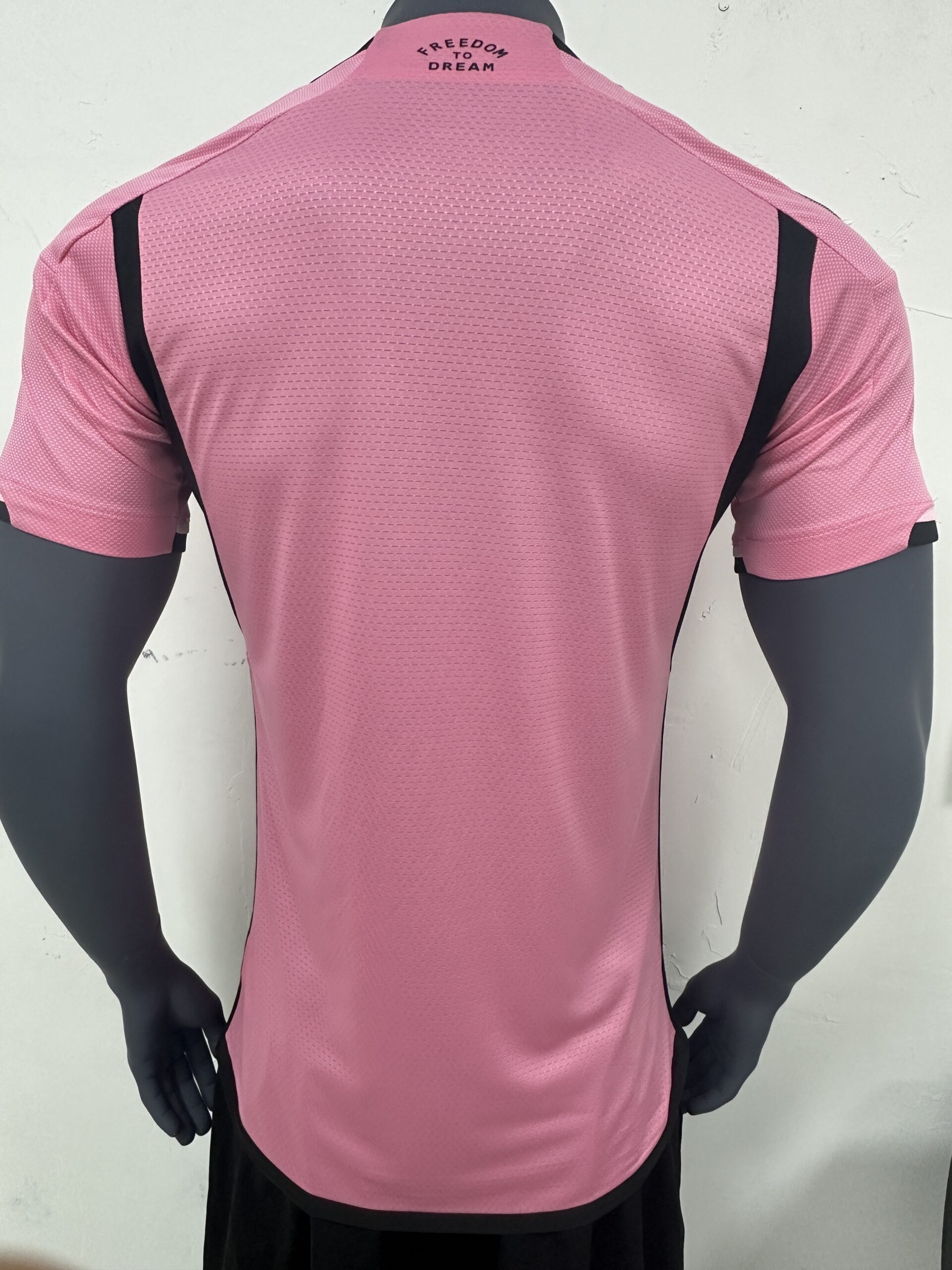 The design of the 24/25 Inter Miami CF Home Jersey (Player Version) artfully combines modern fashion trends with elements that pay homage to the club’s identity. The overall cut of the jersey is form – fitting yet allows for unrestricted movement. The sleeves are designed to be flexible, enabling the players to make quick arm movements for passes and tackles. The hem of the jersey is slightly curved, adding a modern and stylish edge.